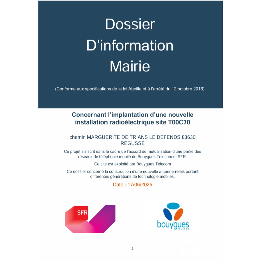 Concernant l’implantation d’une nouvelle installation radioélectrique site T00C70